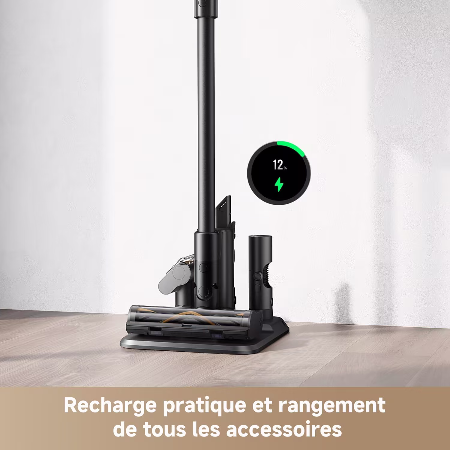 Les 90 minutes en mode Eco avec l'accessoire combine couvrent les besoins des grands interieurs. L'ecran LED affiche le mode, la batterie et les alertes d'entretien. Le support mural avec rangement d'accessoires integre garde l'aspirateur organise et pret a l'emploi. Le Z10 offre un excellent equilibre entre performances et rapport qualite-prix dans la serie Z.