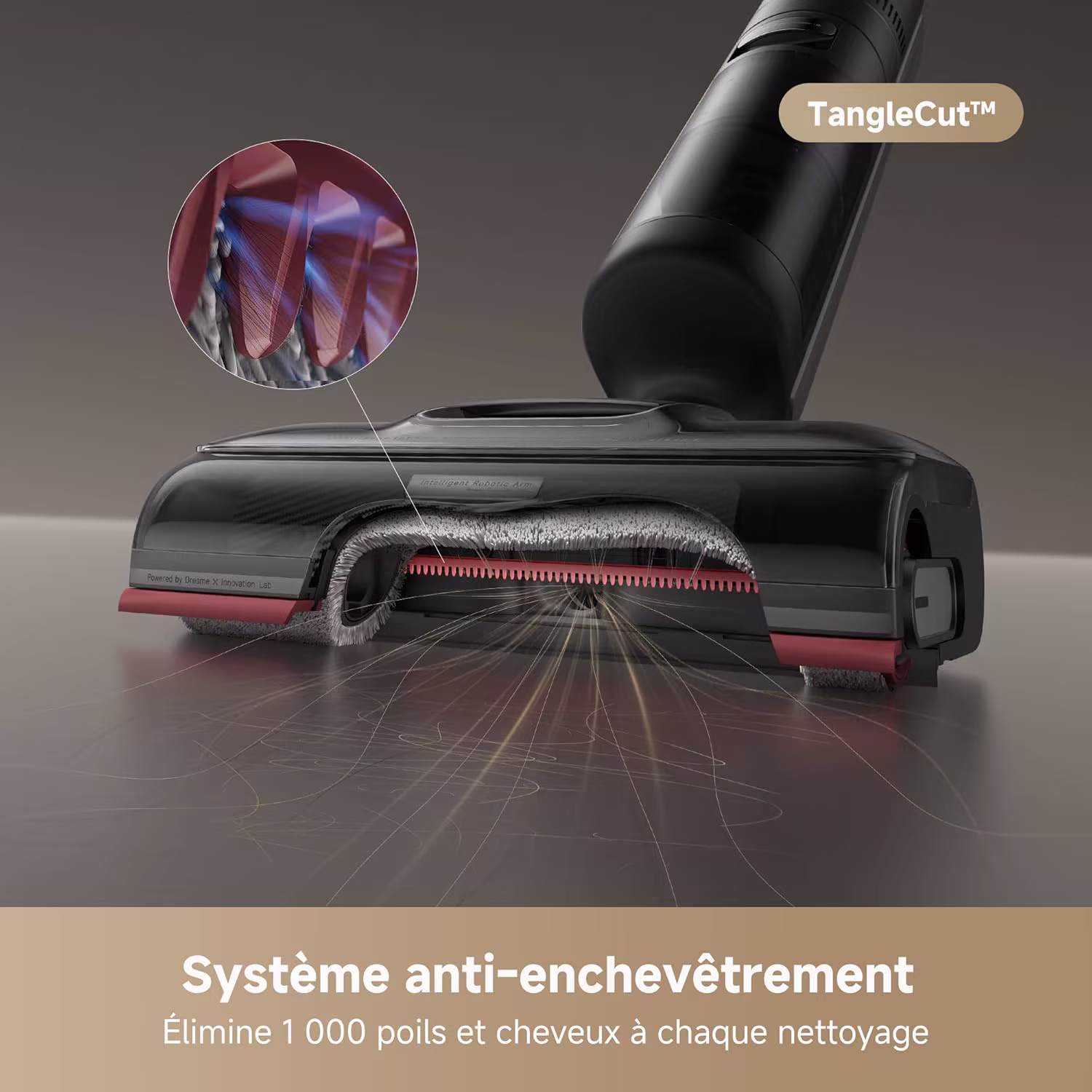 Le Dreame H15 Pro embarque le bras robotique AI DescendReach GapFree et une couverture triple bords. Cette technologie lui permet de nettoyer sous les meubles les plus bas, le long des plinthes et dans les recoins ou la poussiere s'accumule. Le design ultra-plat a 180 degres s'adapte a toutes les configurations d'interieur. Les 21 000 Pa d'aspiration capturent les saletes en un seul passage.