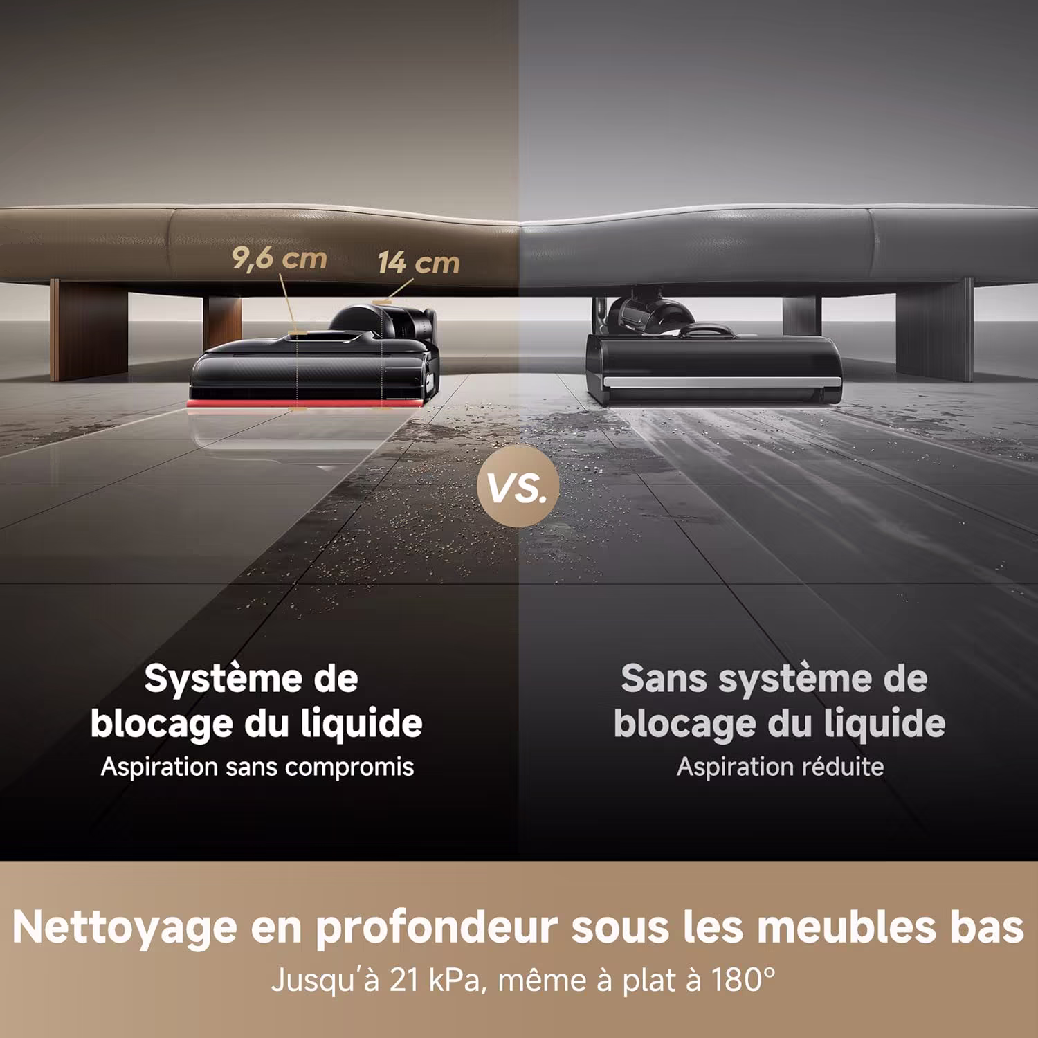 → Nettoyage triple bordure à 0 mm — atteint directement les plinthes sans angle mort