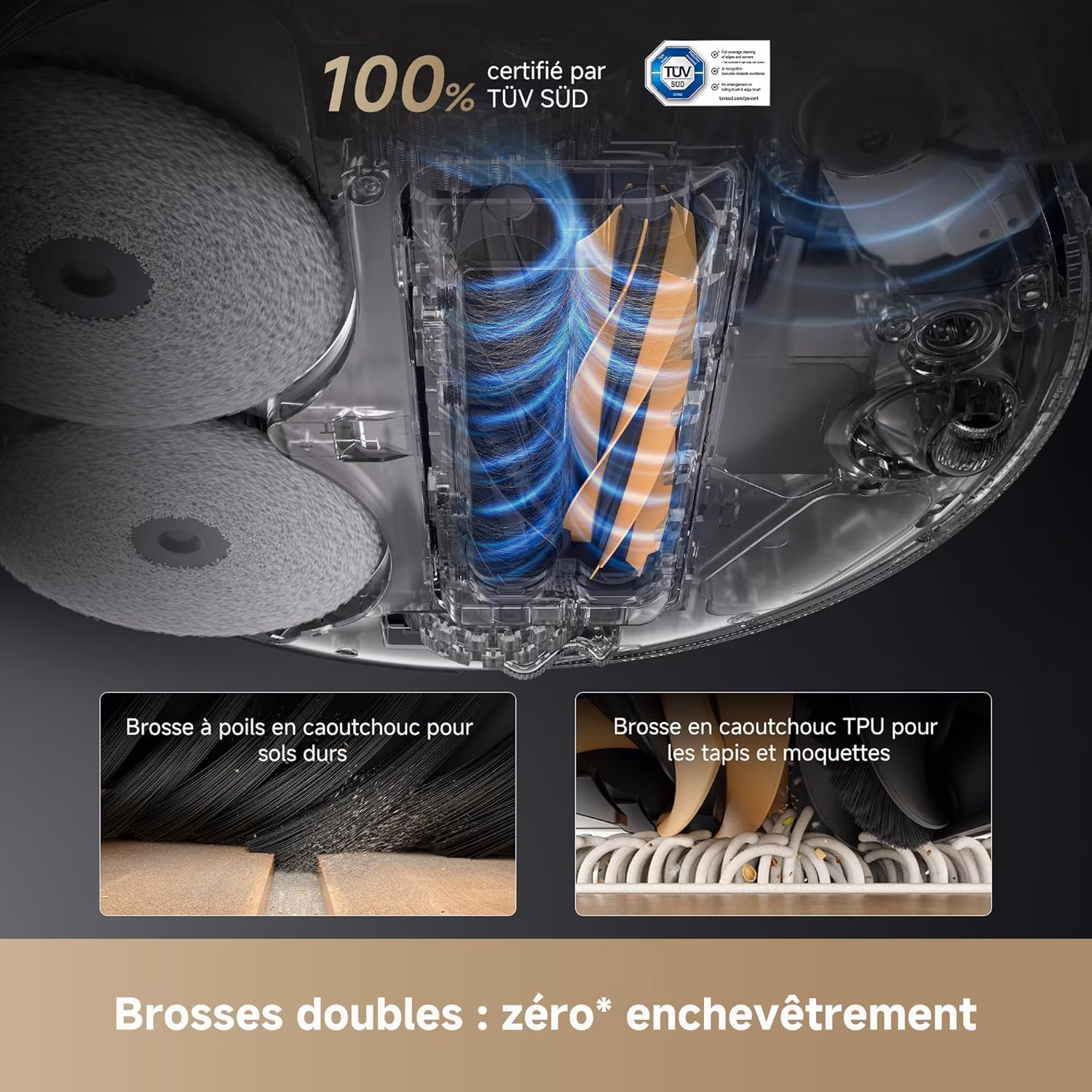 → Aspiration de 19 500 Pa — proche du X50 (20 000 Pa) et nettement supérieure au L40s Pro Ultra (15 000 Pa) et L10s Ultra Gen 2 (10 000 Pa)