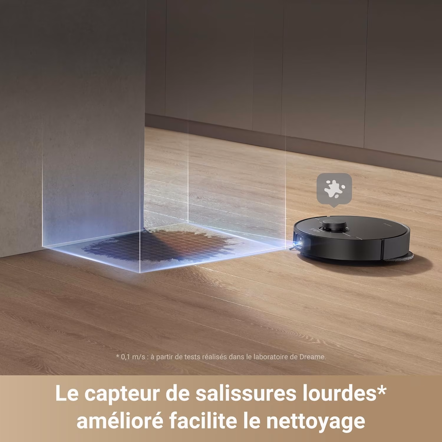 Le Dreame X40 Master pousse l'integration encore plus loin avec le systeme MopExtend RoboSwing, une station 8-en-1 et le remplissage automatique d'eau. Ses serpillieres extensibles depassent le chassis pour frotter au ras des murs, un avantage concret dans les cuisines et couloirs etroits que l'on trouve dans les maisons de ville belges. Les 12 000 Pa d'aspiration Vormax capturent poussieres fines et debris sur tous les types de revetements.