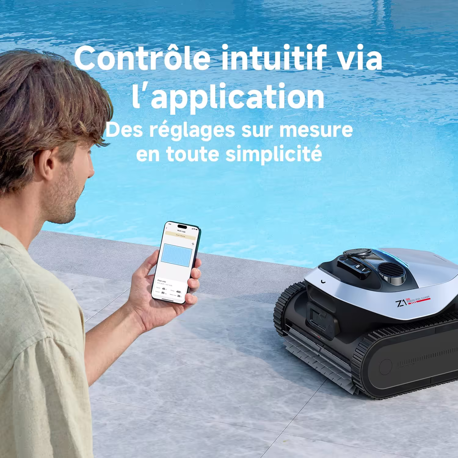 Autonomie et fiabilite en immersion totale La batterie de 10 000 mAh offre 180 minutes d'autonomie, largement suffisantes pour les plus grands bassins. La commande LiFi et la certification IPX8 garantissent un fonctionnement fiable en immersion complete. Avec 7,5 kg seulement, le Z1 Pro est facile a manipuler pour le mettre a l'eau et le sortir apres chaque session.