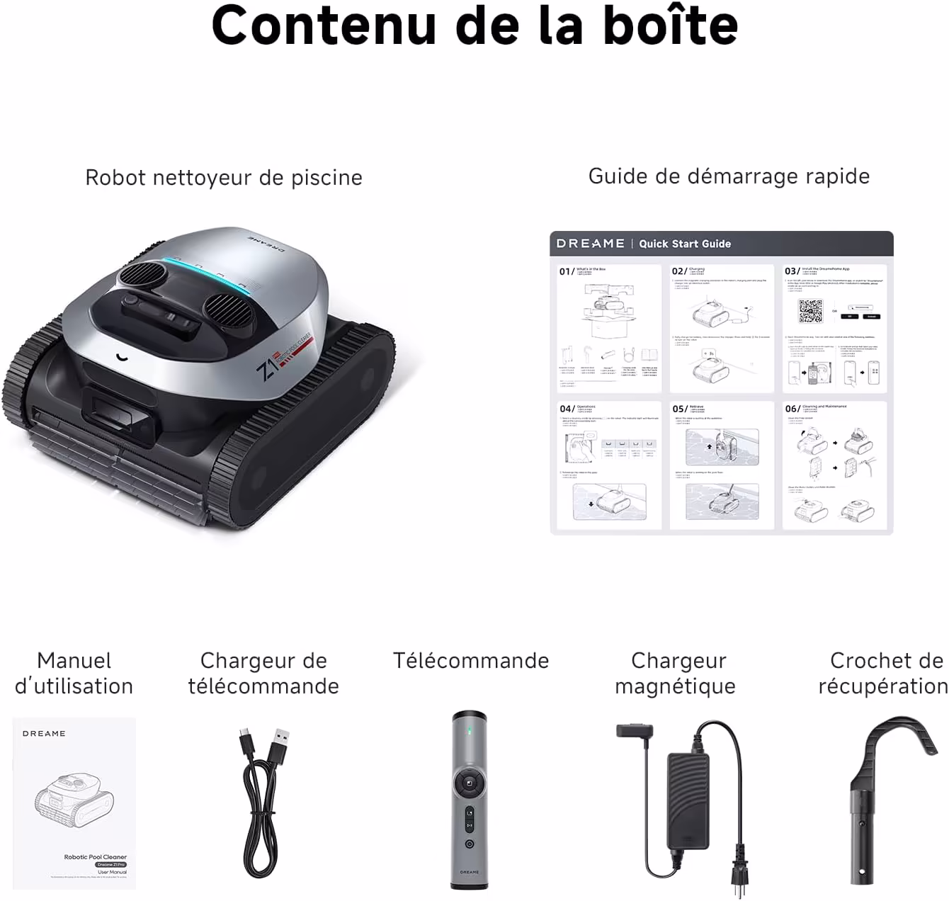 Le Dreame Z1 Pro est un robot nettoyeur de piscine entierement sans fil qui prend en charge l'integralite de l'entretien du bassin. Sa technologie exclusive PoolSense de cartographie 3D lui permet de nettoyer le fond, les parois et la ligne d'eau de facon autonome. Un gain de temps considerable pour les proprietaires de piscines.