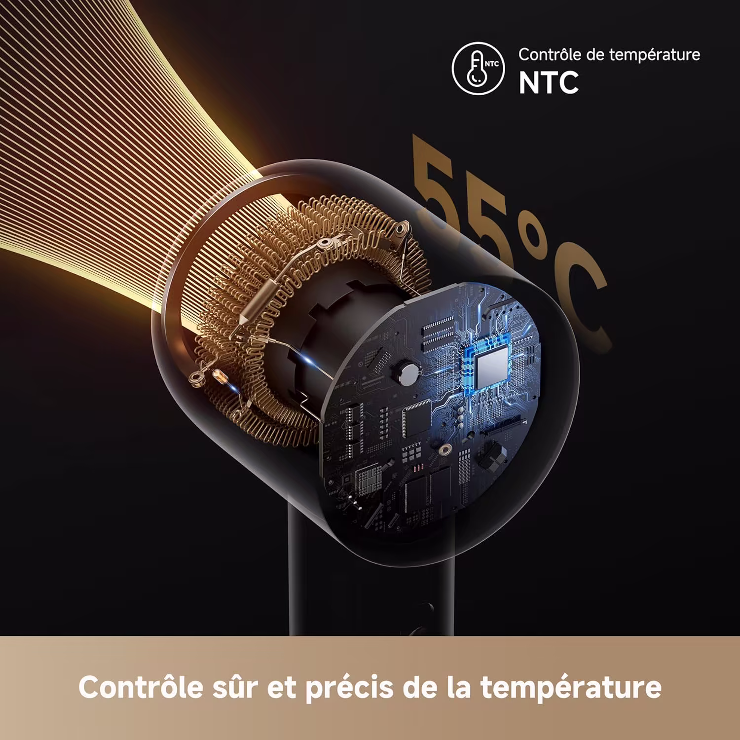→ Temperature maximale de 55 C — ideale pour les cheveux fins ou colores