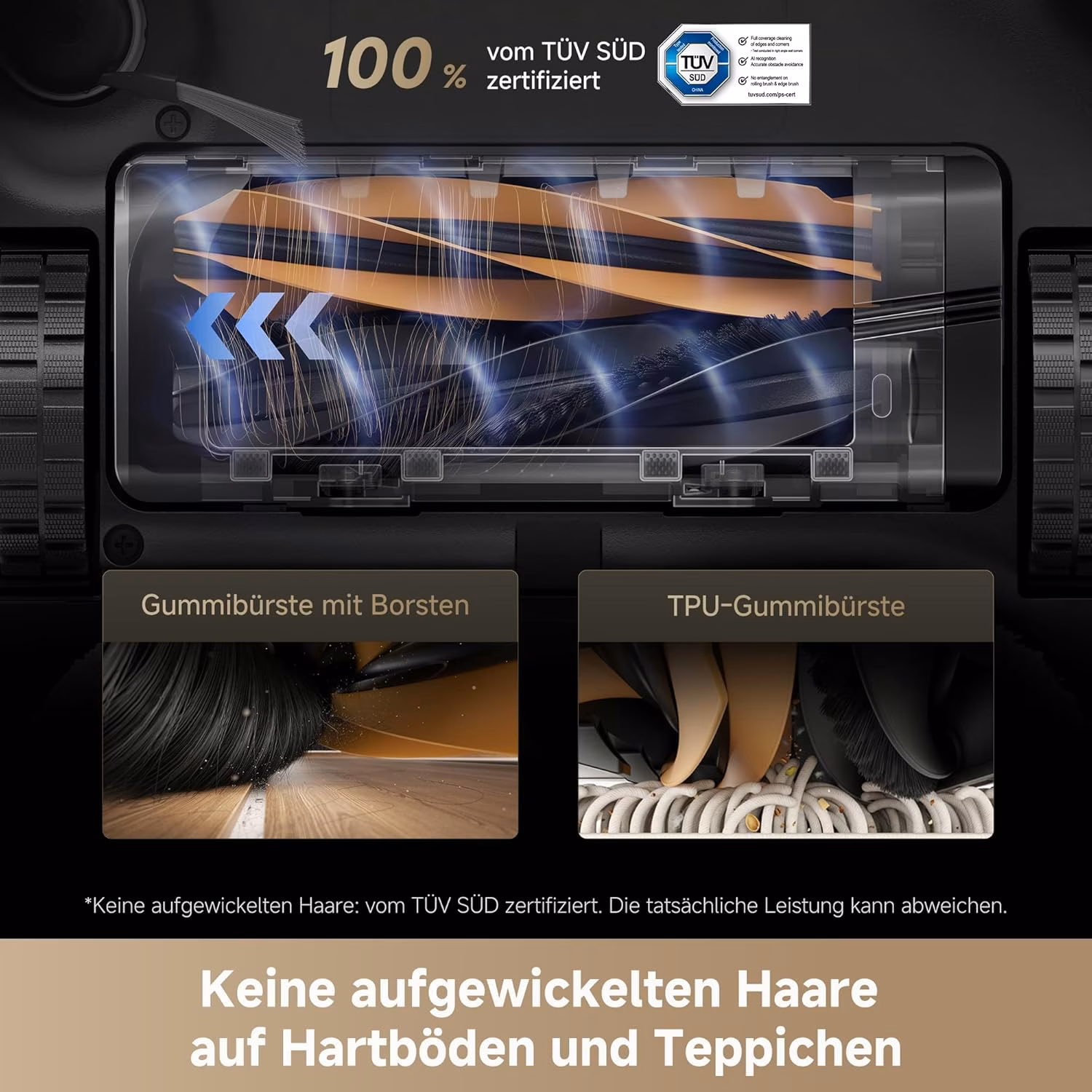 Vormax™-Saugkraft mit 15.000 Pa Der Vormax™-Motor liefert 15.000 Pa Saugleistung für Feinstaub, Tierhaare, Krümel und tief sitzenden Schmutz in Teppichfasern. Die anti-Verhedderungs HyperStream™ DuoBrush sorgt für Tiefenreinigung ohne Wartung.