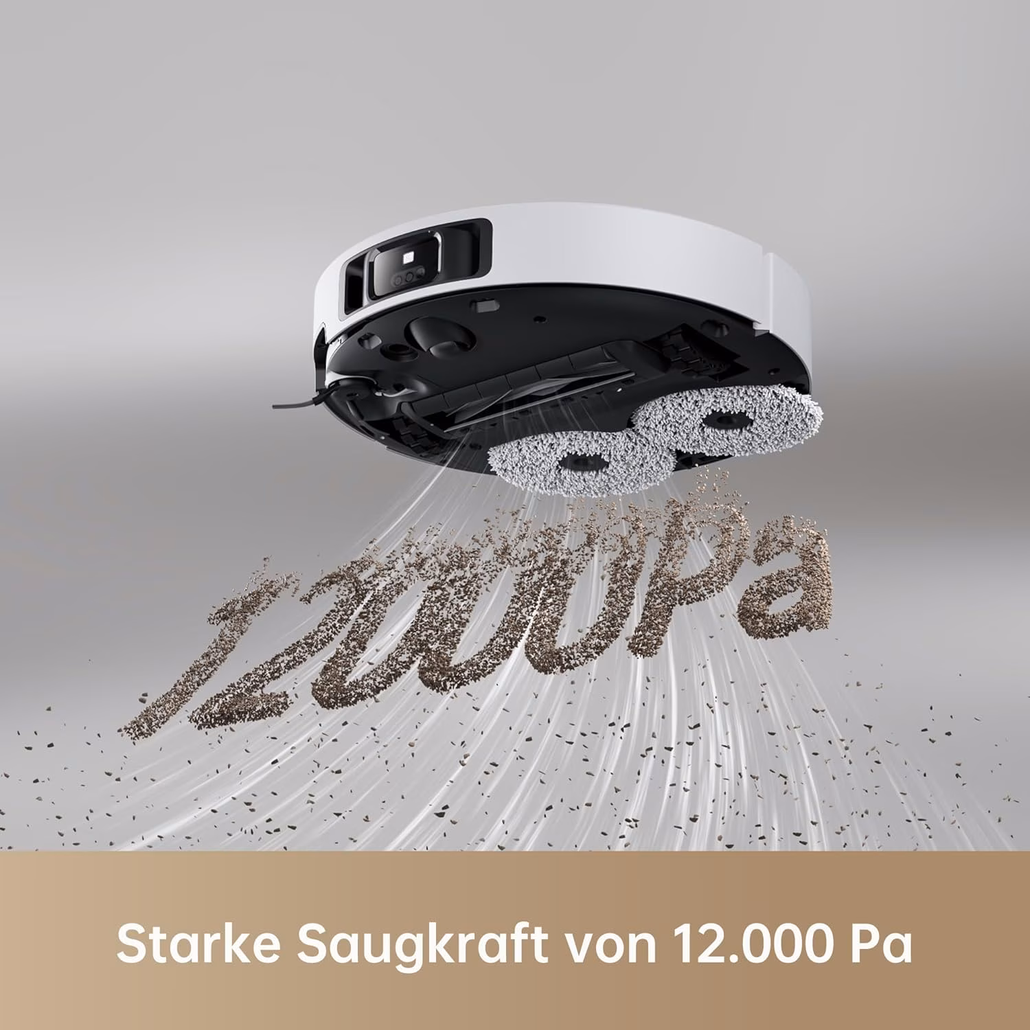 → 12.000 Pa Saugkraft — höher als L10s Ultra Gen 2 (10.000 Pa), aber niedriger als X50 (20.000 Pa) und L40s Pro Ultra (15.000 Pa)