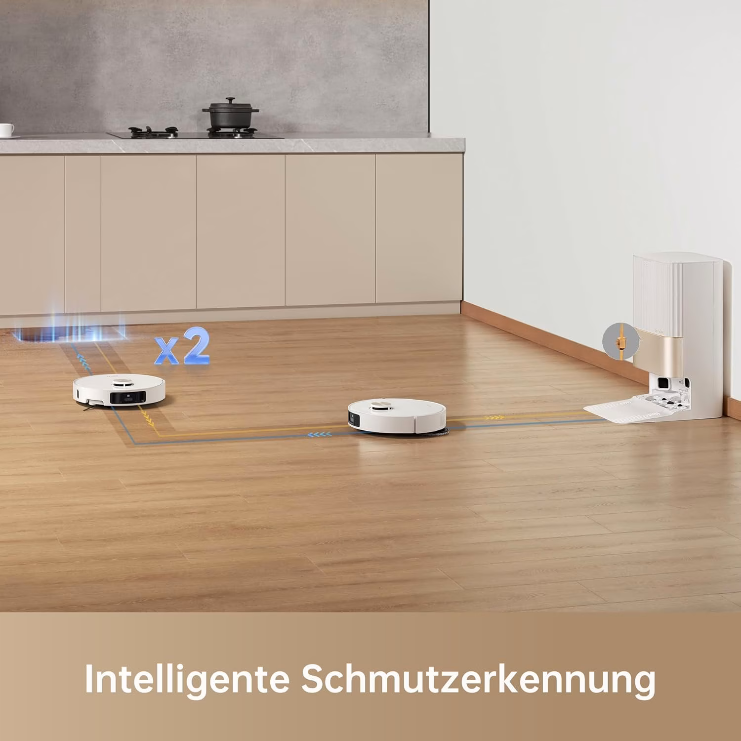 Intelligente OmniDirt™-Erkennung Mit hochentwickelten Sensoren, die Farbnuancen und Verschmutzungsgrade erkennen, sorgt der X40 Ultra Complete für optimale Reinigung — von Alltagsstaub bis zu hartnäckigen Flecken.