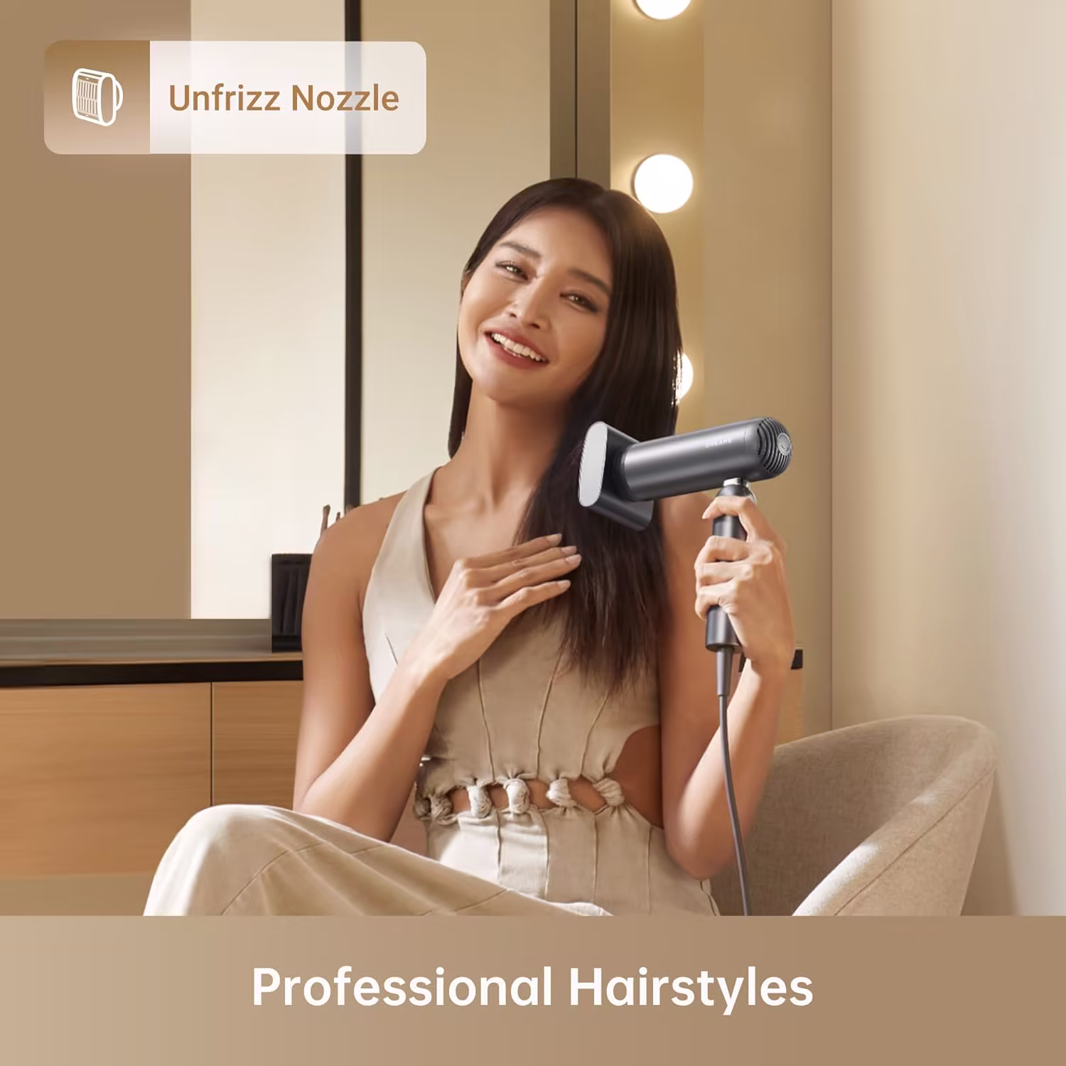 I keep the Pocket Neo in my gym bag and use it after every swim. My short hair is dry in under a minute โ the 70 m/s airflow is genuinely powerful. The 6-layer noise reduction keeps it quiet enough for early mornings. At 300 grams, I barely notice it in my bag. The anti-frizz nozzle is all I need for my hair type. The ionic technology leaves a nice smooth finish. Cannot ask for more from a pocket-sized dryer.