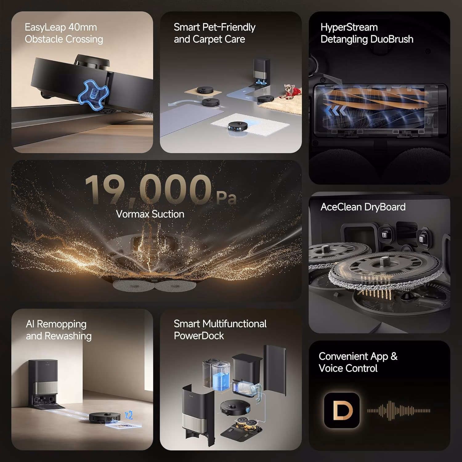 → 15,000 Pa suction — higher than X40 (12,000 Pa) and L10s Ultra Gen 2 (10,000 Pa) but lower than L50 Pro Ultra (19,500 Pa) and X50 (20,000 Pa)