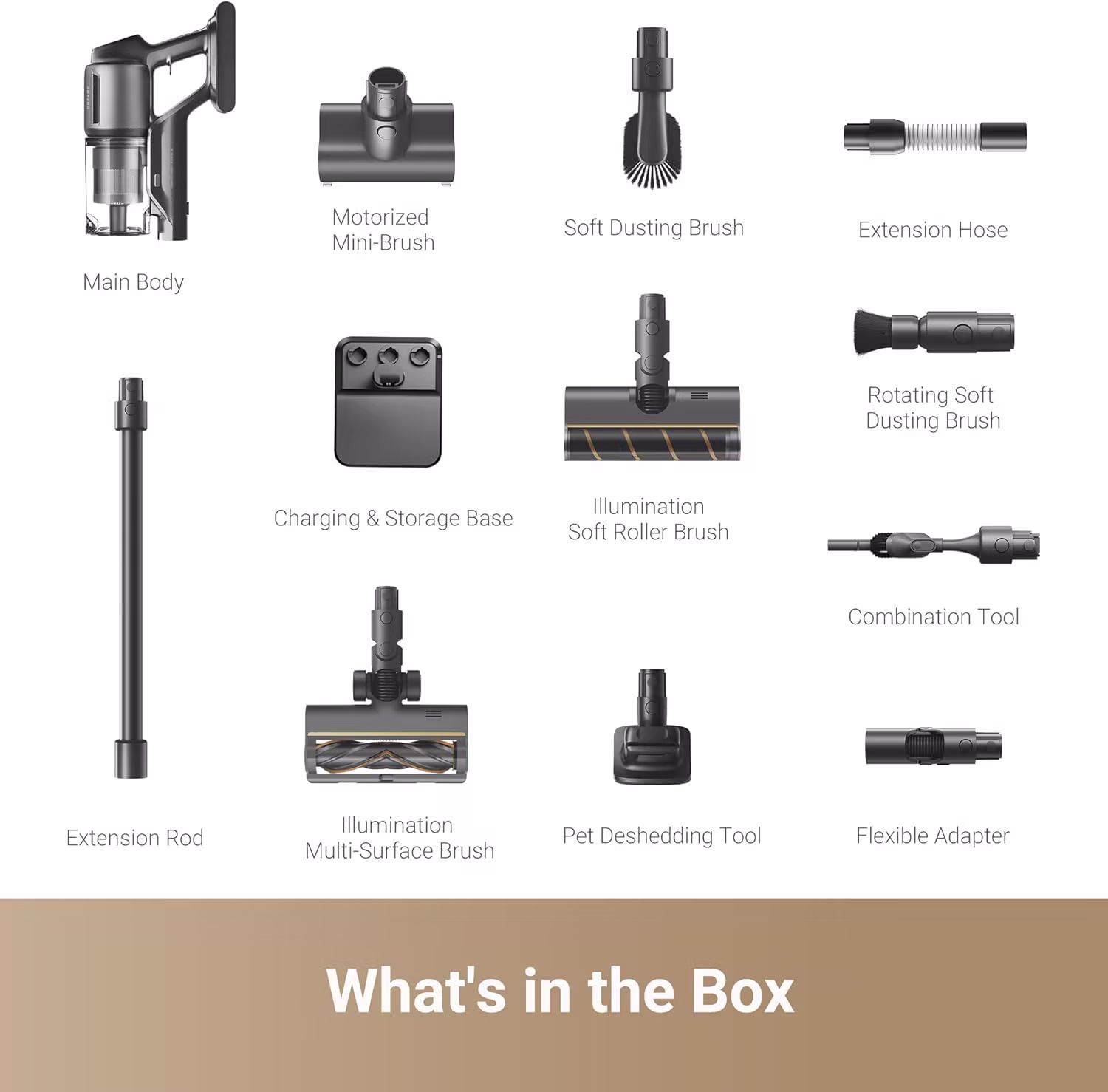 The Z30 features the TangleCut™ dual scraper brush, Dreame's most advanced anti-tangle technology. Hair and pet fur are automatically cut and expelled, ensuring consistent performance without tedious maintenance. The HD colour screen provides a clear, intuitive interface displaying the selected suction mode, remaining battery life in real time and maintenance notifications. The flexible tube enables thorough cleaning under all furniture.