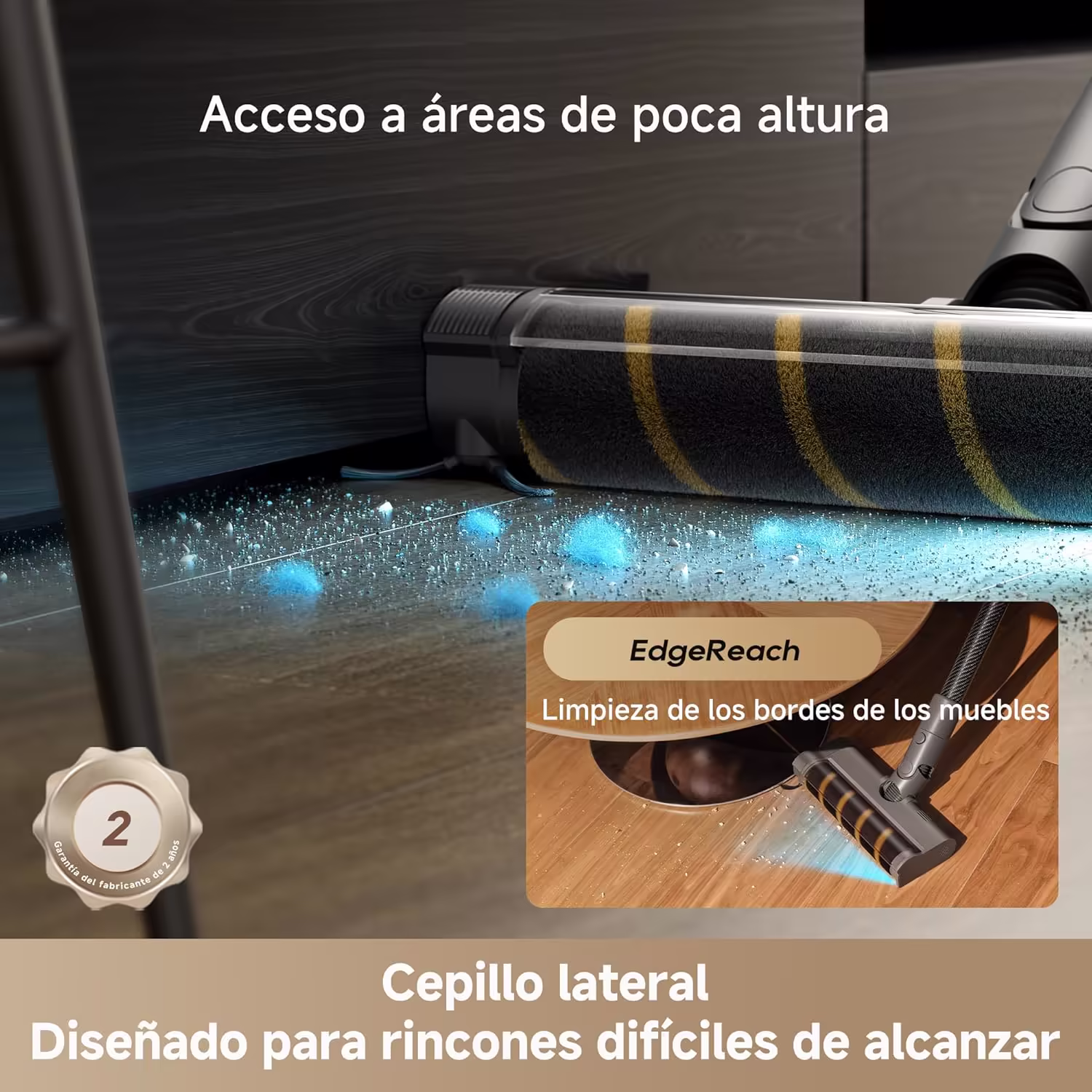 → El cepillo lateral EdgeReach es único en la gama Dreame para alcanzar esquinas a 0 mm