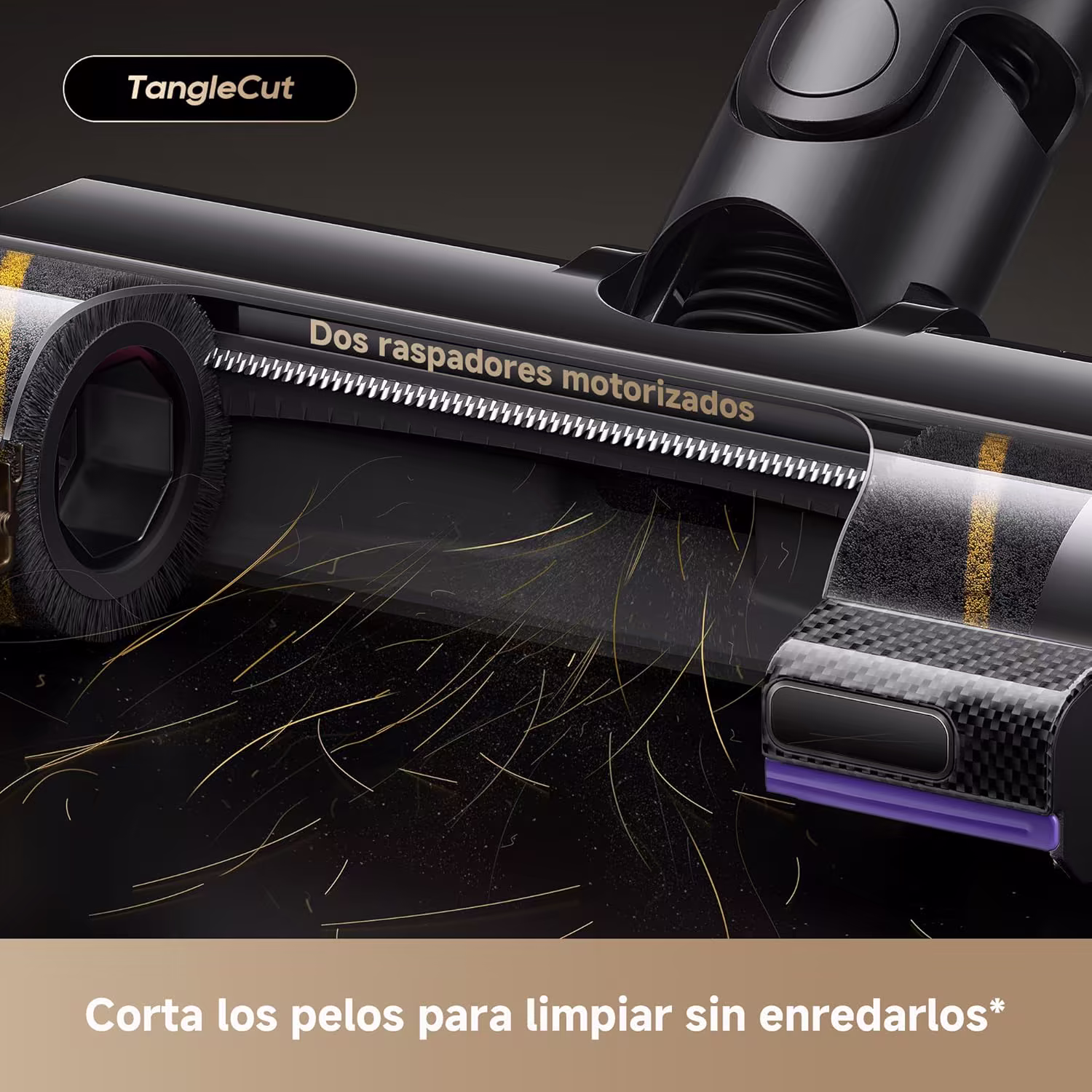 → El sistema Double TangleCut motorizado corta automáticamente el pelo durante la aspiración