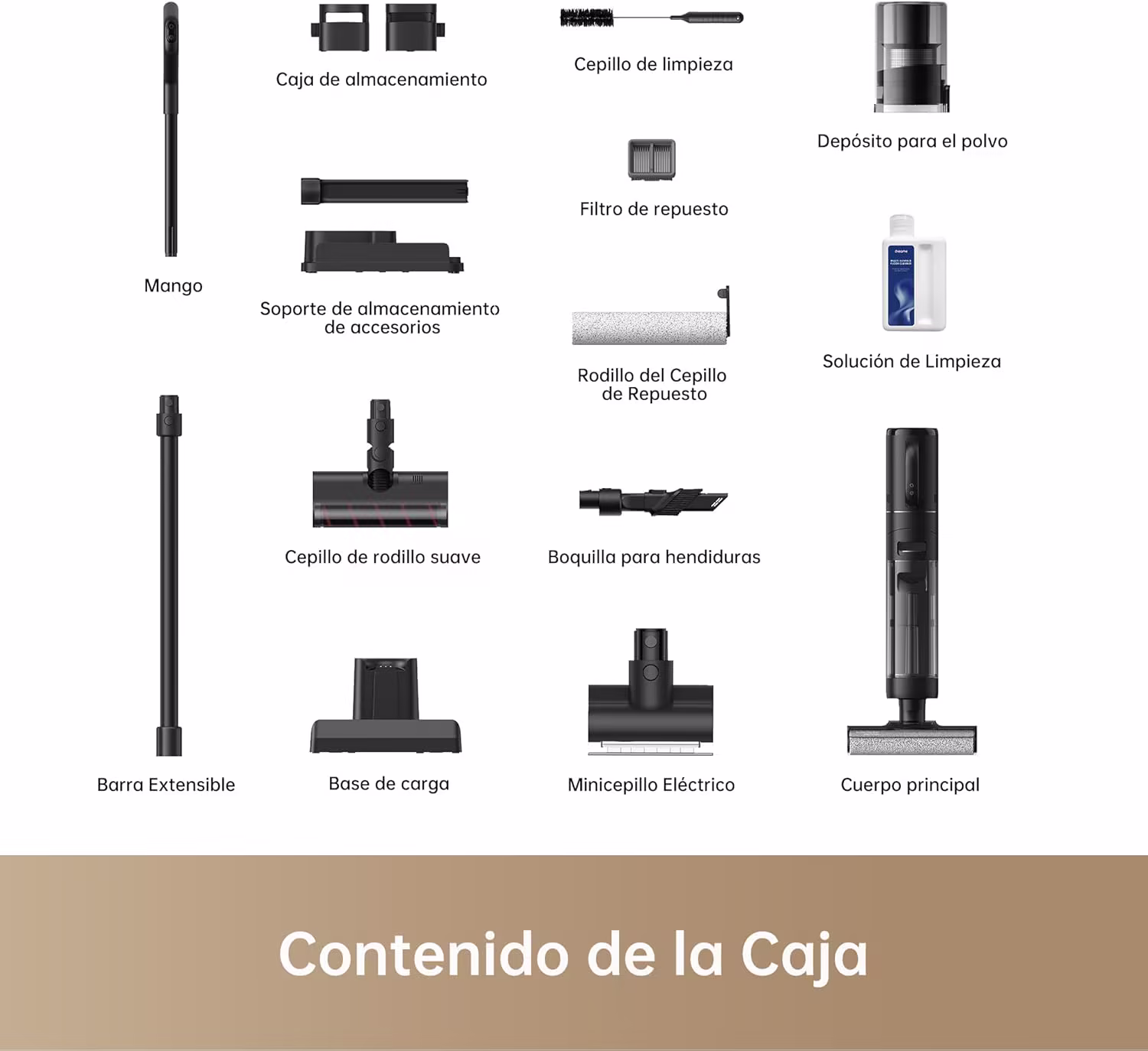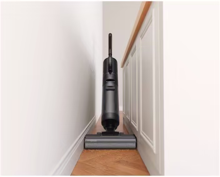 El Dreame H12 Dual destaca por su versatilidad excepcional. No es un simple aspirador fregador, sino un sistema de limpieza 4 en 1 que combina aspiracion en seco, fregado humedo, aspiracion portatil y modo manguera. Ya necesites limpiar las baldosas de la cocina, aspirar migas del sofa o alcanzar rincones complicados, el H12 Dual resuelve cada tarea sin cambiar de aparato. Su cepillo de doble borde mejorado se acerca a menos de 6 mm de los rodapies, eliminando la suciedad donde los aspiradores convencionales no llegan.