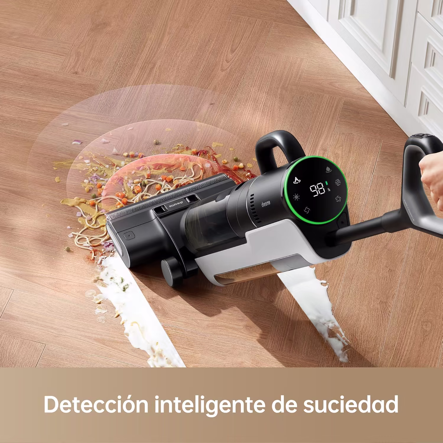 Con 16.000 Pa de potencia de succion, el Dreame H12 Dual ofrece un rendimiento de limpieza convincente en todo tipo de superficies, incluidas alfombras gruesas y moquetas. El sistema de deteccion inteligente de suciedad analiza el nivel de contaminacion en tiempo real y ajusta automaticamente la potencia de succion. Esta tecnologia garantiza una limpieza optima sin intervencion manual, al tiempo que preserva la autonomia de la bateria. Los depositos de agua de gran capacidad permiten sesiones de limpieza prolongadas sin interrupciones.