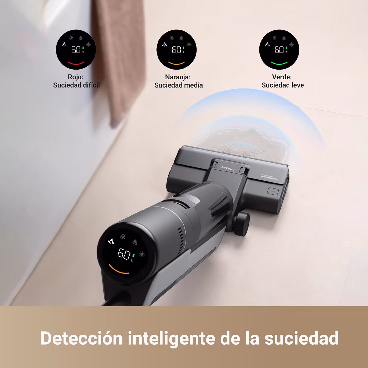 Despues de cada sesion de limpieza, el Dreame H12S ejecuta un ciclo de autolimpieza con un boton que enjuaga el cepillo con agua limpia. El secado por aire caliente a 55°C continua despues durante una hora completa, garantizando la eliminacion total de la humedad residual. Este secado prolongado impide la proliferacion de bacterias y moho, manteniendo el cepillo fresco y libre de malos olores entre usos.