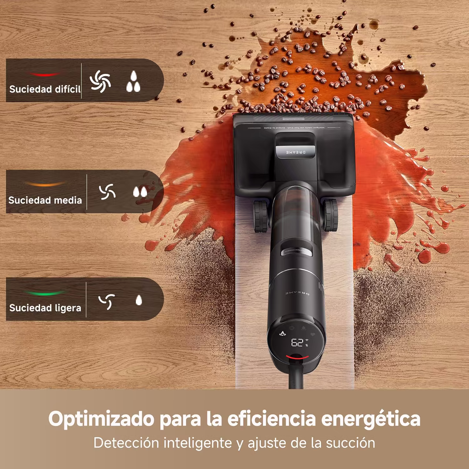 → Nivel de ruido de 63 dBA — el más silencioso de toda la gama de aspiradores fregadores Dreame
