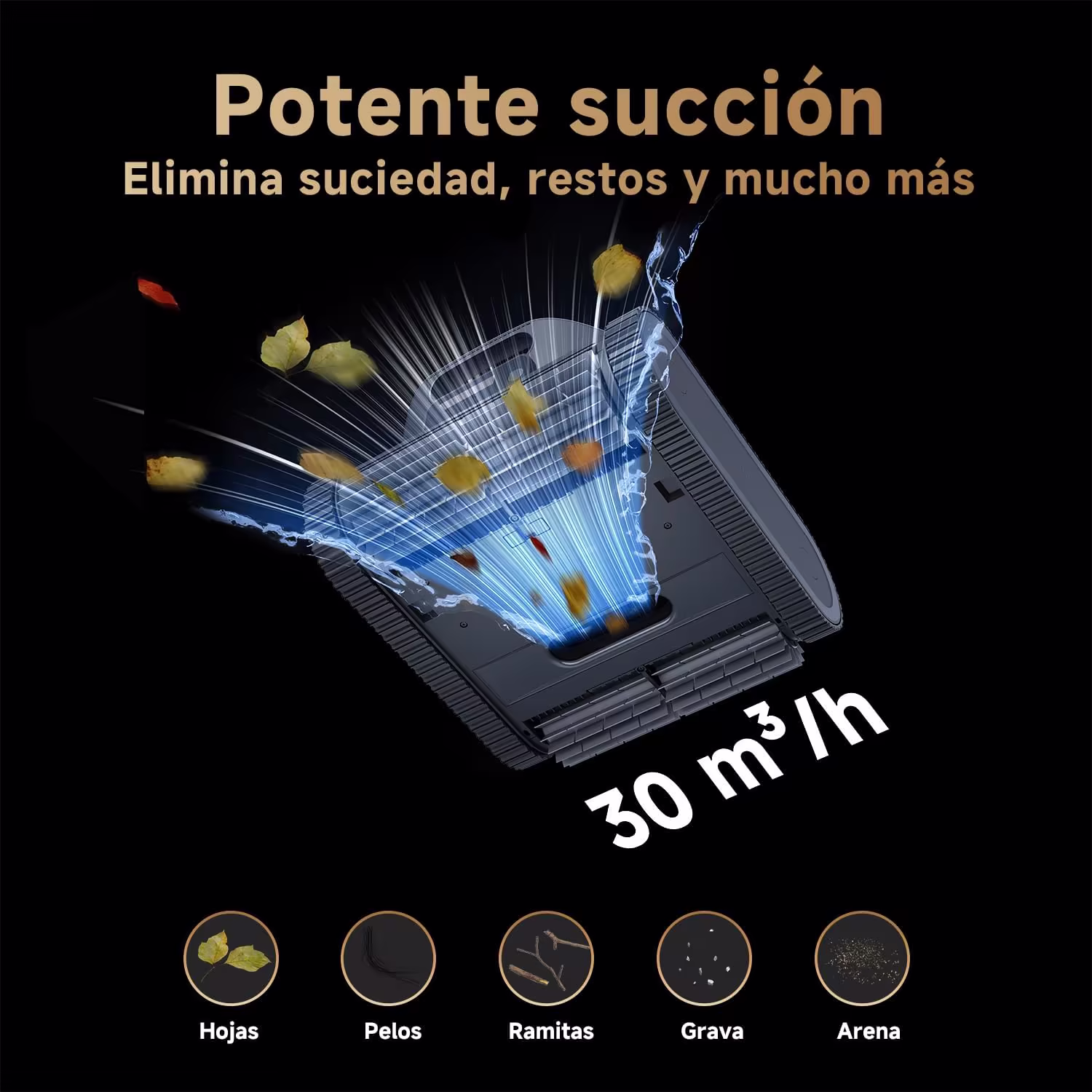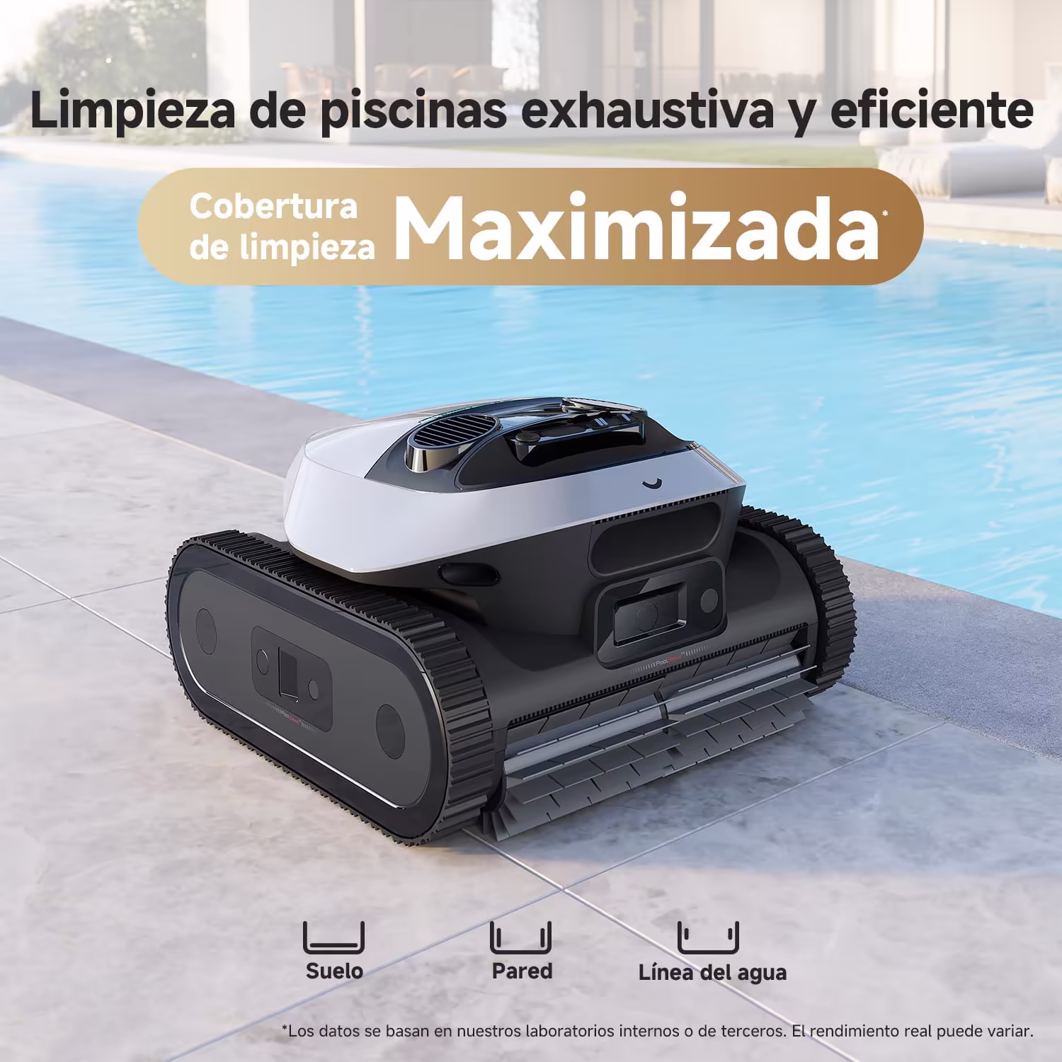 Limpieza completa: suelo, paredes y línea de flotación A diferencia de los robots de piscina convencionales limitados al fondo, el Dreame Z1 Pro limpia toda su piscina. Su potencia de aspiración de 120 litros por minuto y la filtración de 180 micras capturan desde residuos grandes hasta partículas finas. La línea de flotación — donde se acumula la cal y la suciedad — queda profundamente limpia para una piscina impecable.