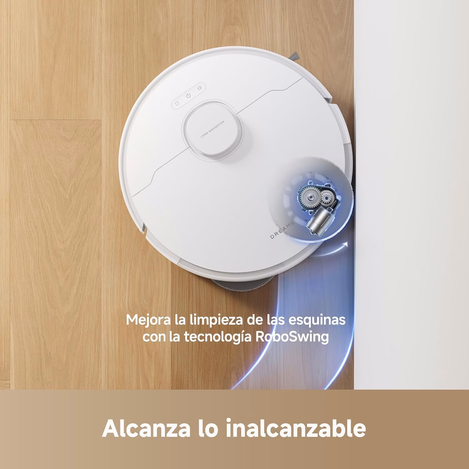 La tecnologia RoboSwing permite al L10s Pro Gen 3 pivotar y acercarse a paredes y esquinas para una limpieza de bordes superior. La deteccion ultrasonica de alfombras activa automaticamente un aumento de potencia y eleva las mopas a 7 mm, protegiendo sus alfombras mientras maximiza la succion. Con una bateria de 5.200 mAh y 155 minutos de autonomia, cubre facilmente 145 m2.