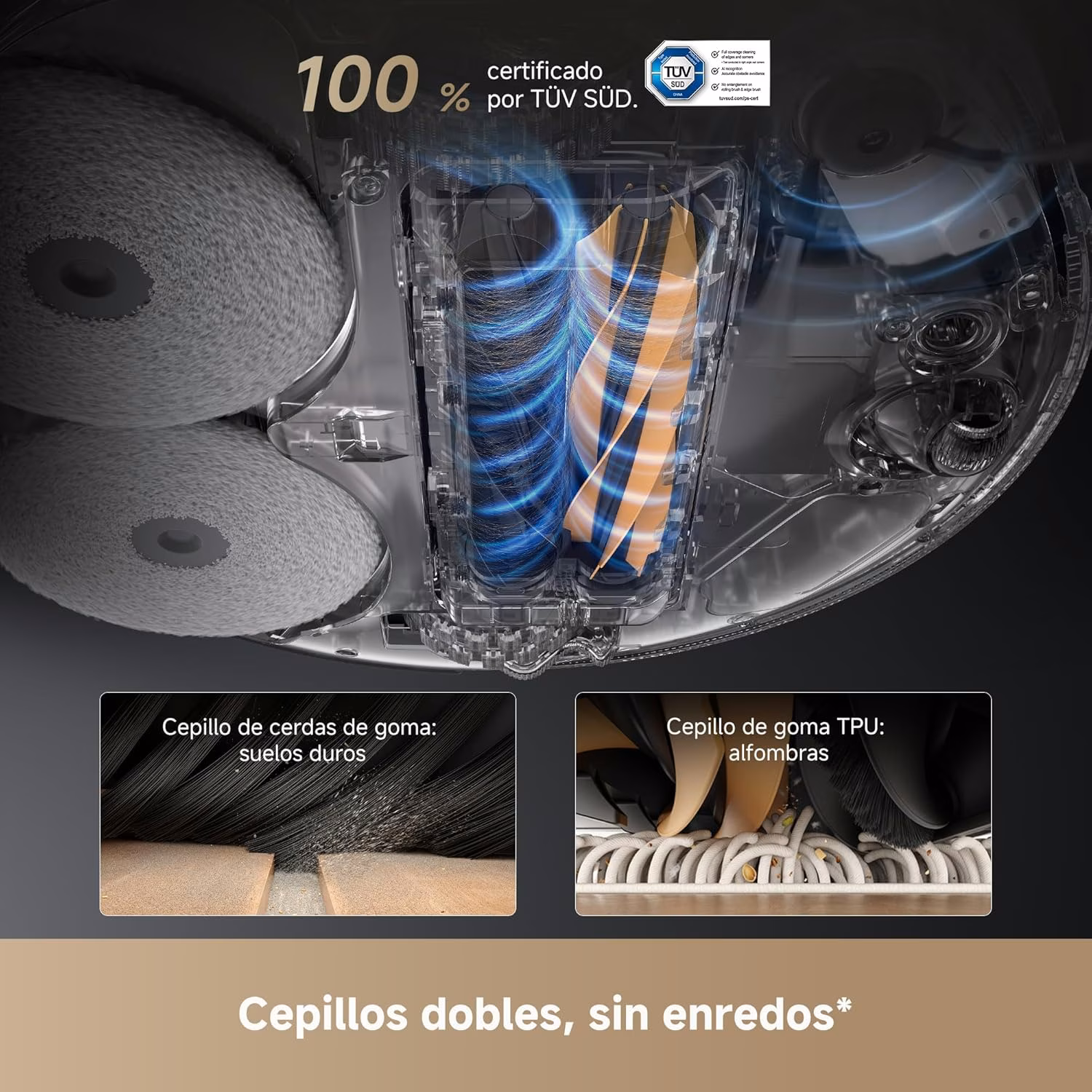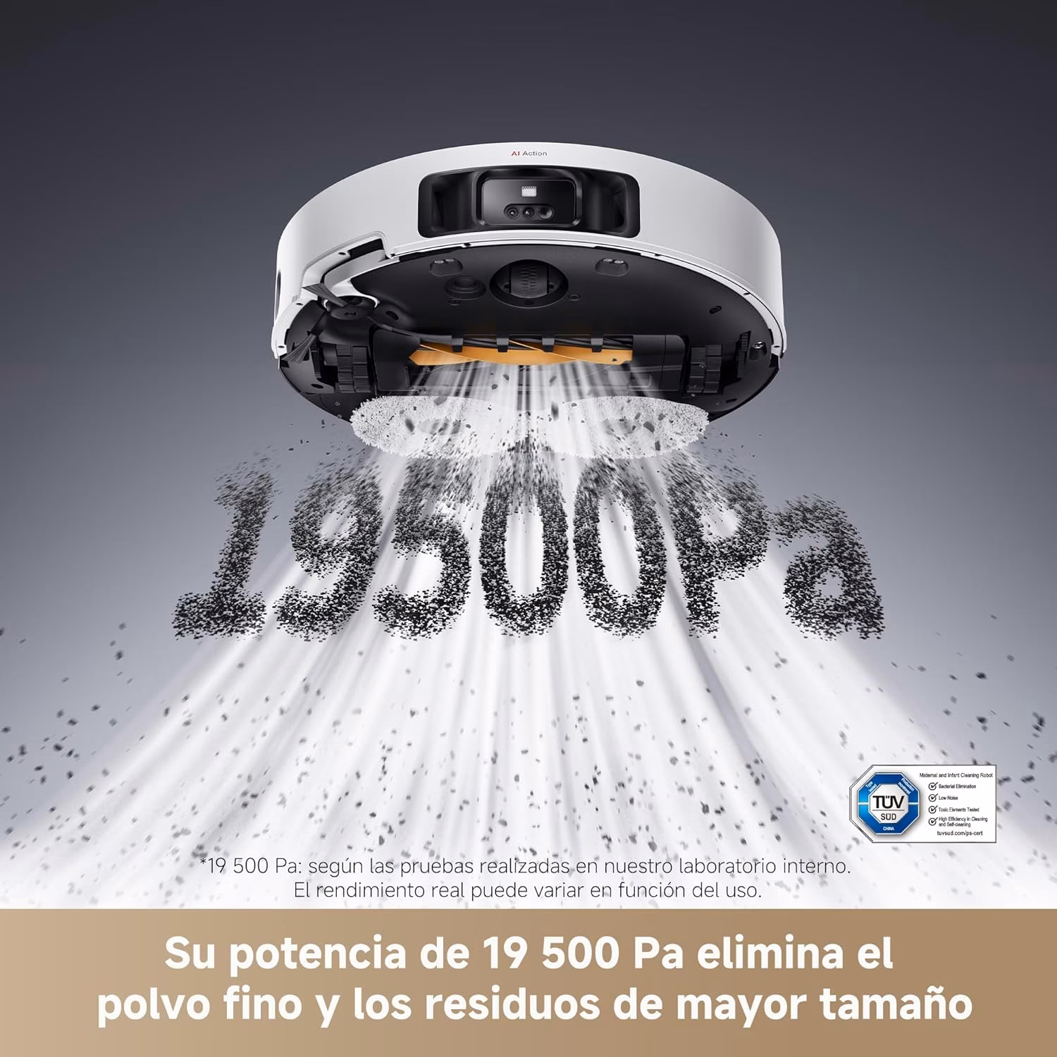 → 19.500 Pa de aspiración — cercana al X50 (20.000 Pa) y significativamente superior al L40s Pro Ultra (15.000 Pa) y L10s Ultra Gen 2 (10.000 Pa)
