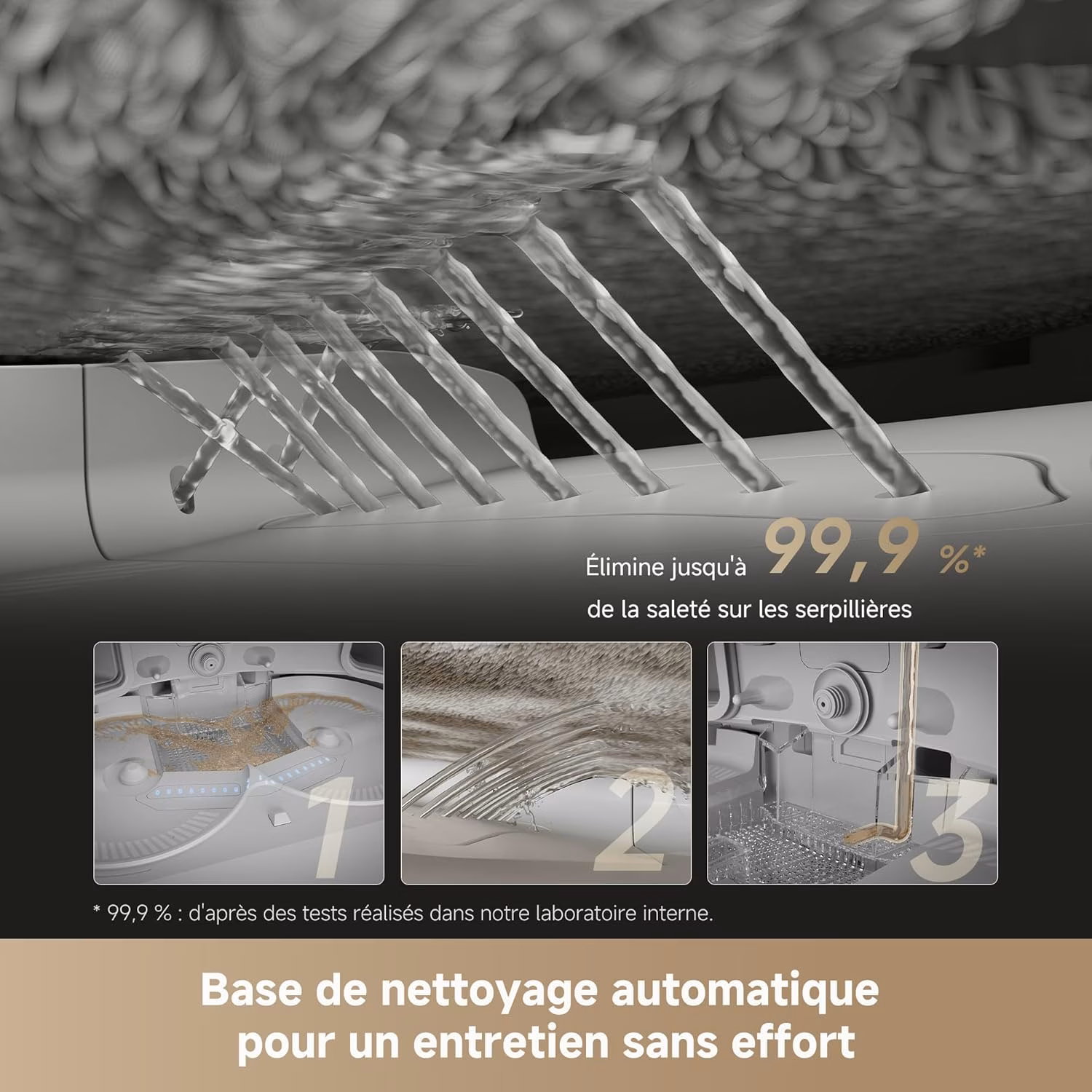→ Aspiration de 19 500 Pa — proche du X50 (20 000 Pa) et nettement supérieure au L40s Pro Ultra (15 000 Pa) et L10s Ultra Gen 2 (10 000 Pa)
