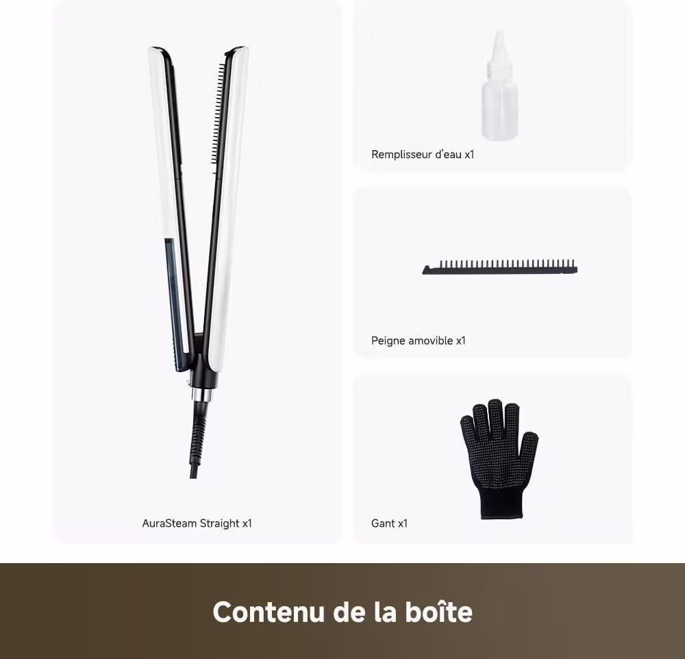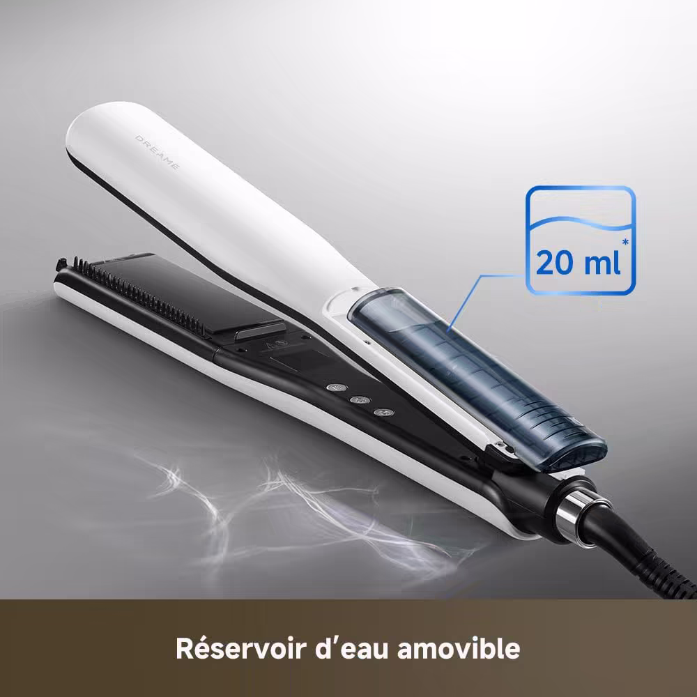 Le Dreame AuraSteam Straight revolutionne le lissage avec son systeme Hydra-Mist a vapeur. Plaques 3D ultra-larges et infusion d'humidite : il lisse sans assecher, pour des cheveux proteges et brillants.