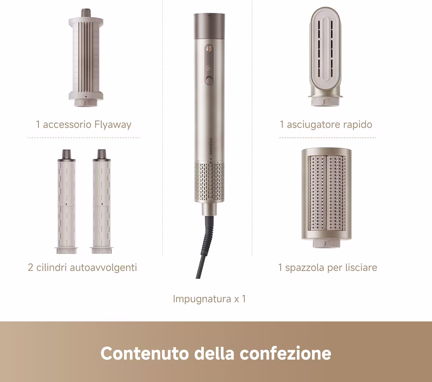 → Effetto Coanda brevettato — attira automaticamente le ciocche attorno ai cilindri