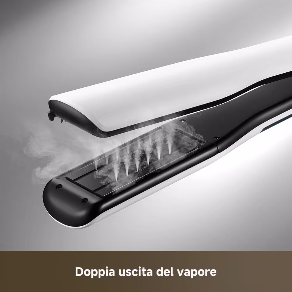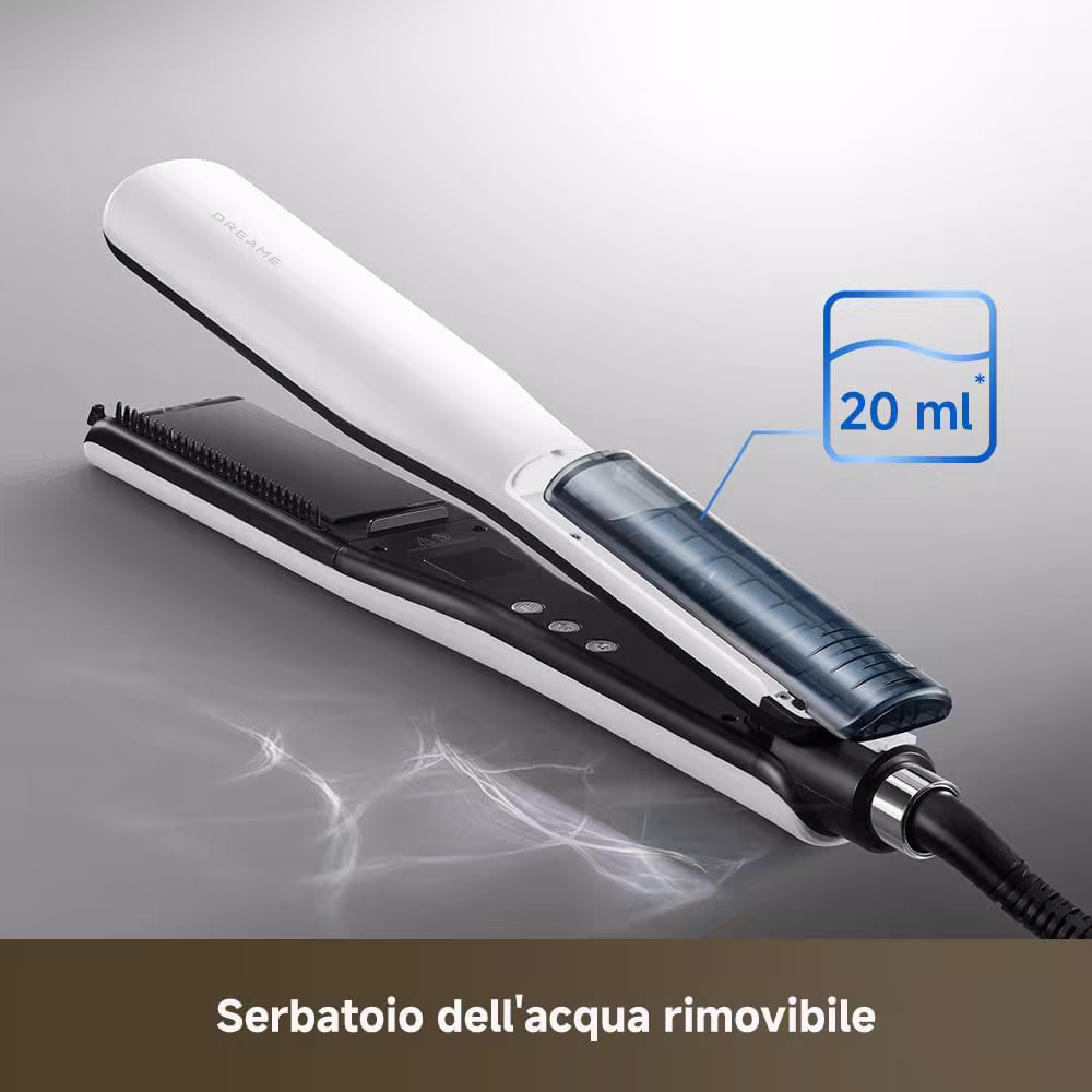 Il Dreame AuraSteam Straight rivoluziona la stiratura con il suo sistema a vapore Hydra-Mist. Piastre 3D ultra-larghe e infusione di umidita: liscia senza seccare, per capelli protetti e luminosi.