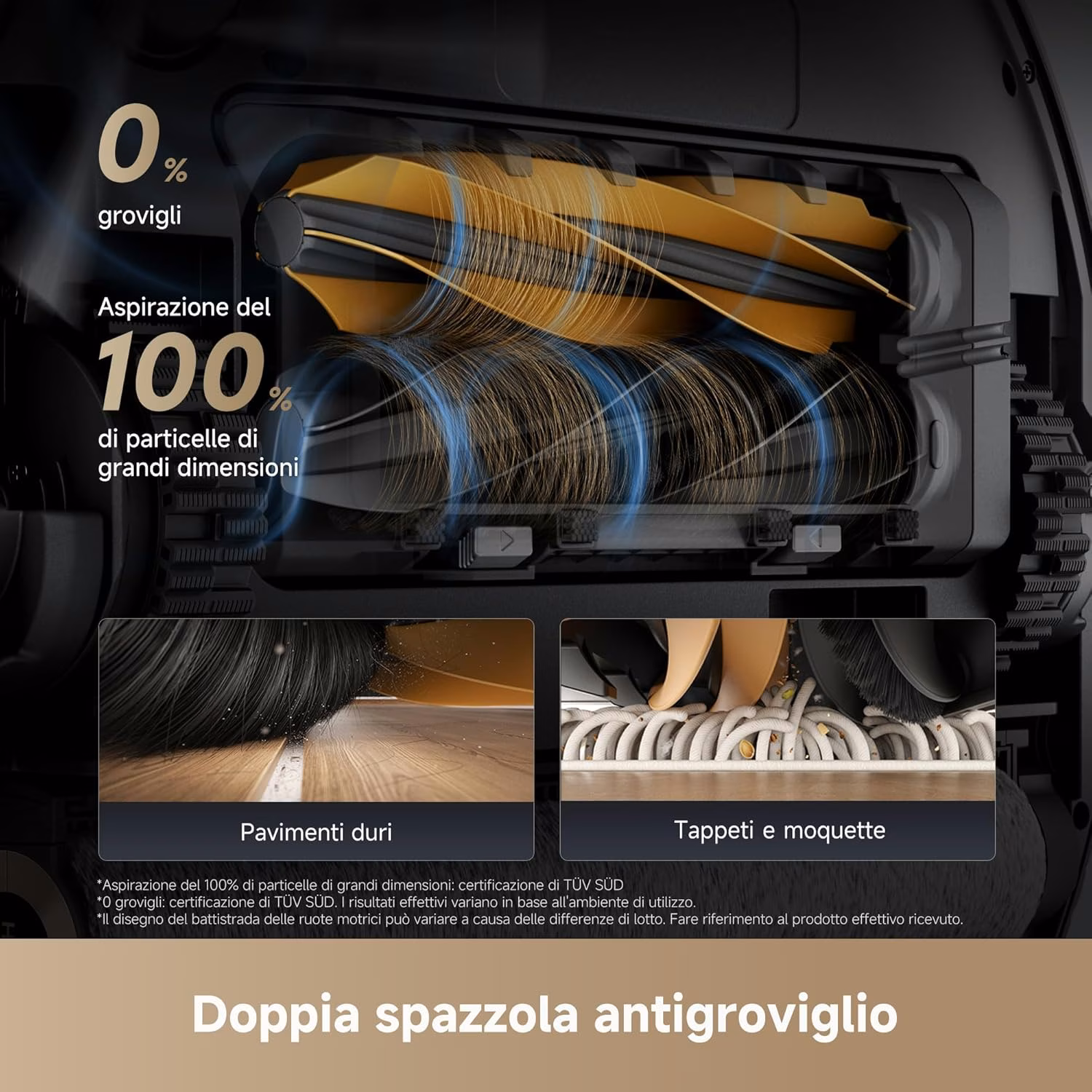 30.000 Pa + Rullo Lavapavimenti — Potenza incontra igiene Con 30.000 Pa, l'Aqua10 Roller e il robot piu potente della gamma Dreame. Il sistema a rullo con acqua pulita si differenzia dai panni convenzionali: l'acqua sporca viene estratta continuamente mentre viene erogata acqua fresca, come un lavapavimenti professionale. La protezione AutoSeal sigilla automaticamente il rullo sui tappeti per proteggerli dall'umidita.