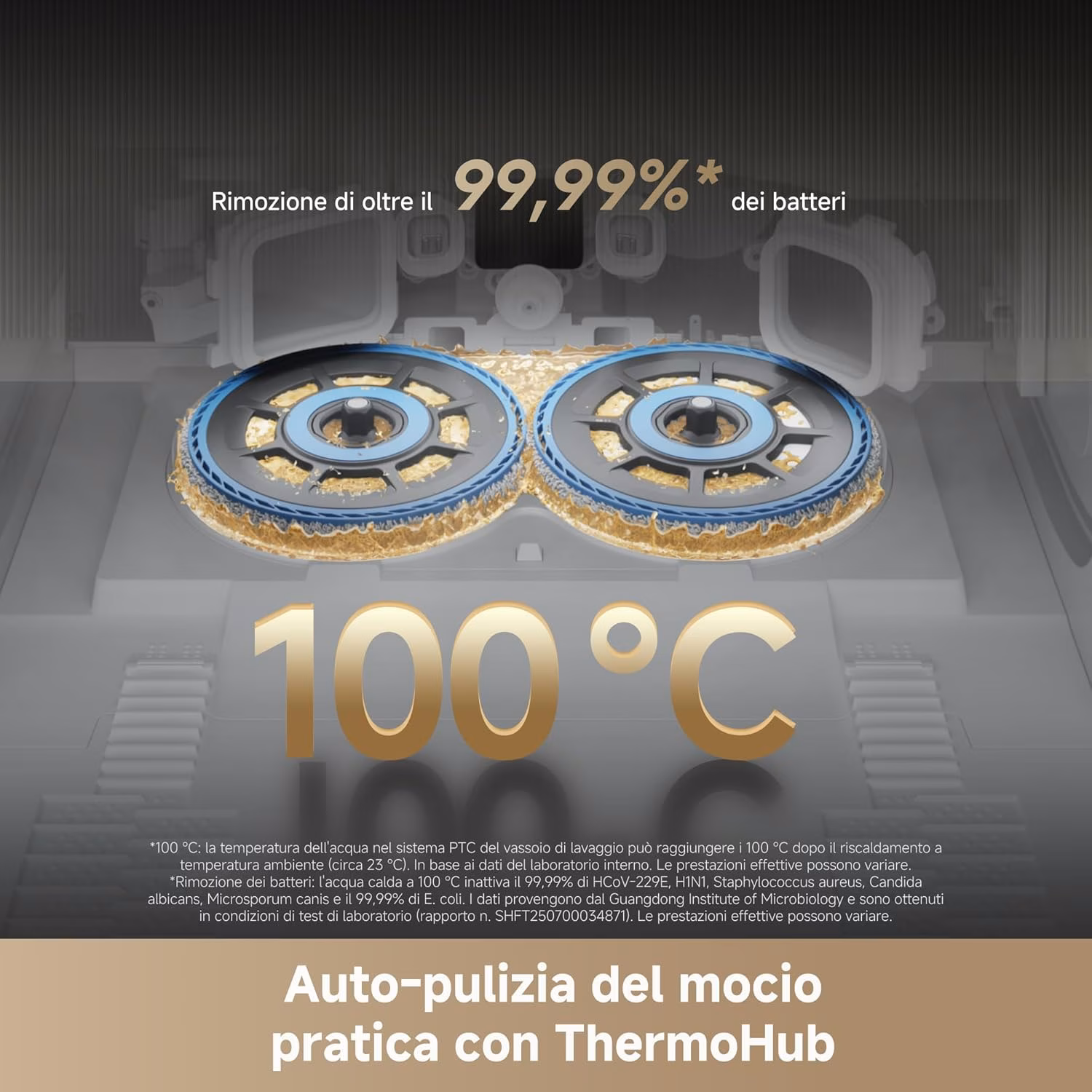 → 30.000 Pa di aspirazione — la piu potente sul mercato, superiore a X50 Ultra Complete (20.000 Pa) e L40s Pro Ultra (18.000 Pa)