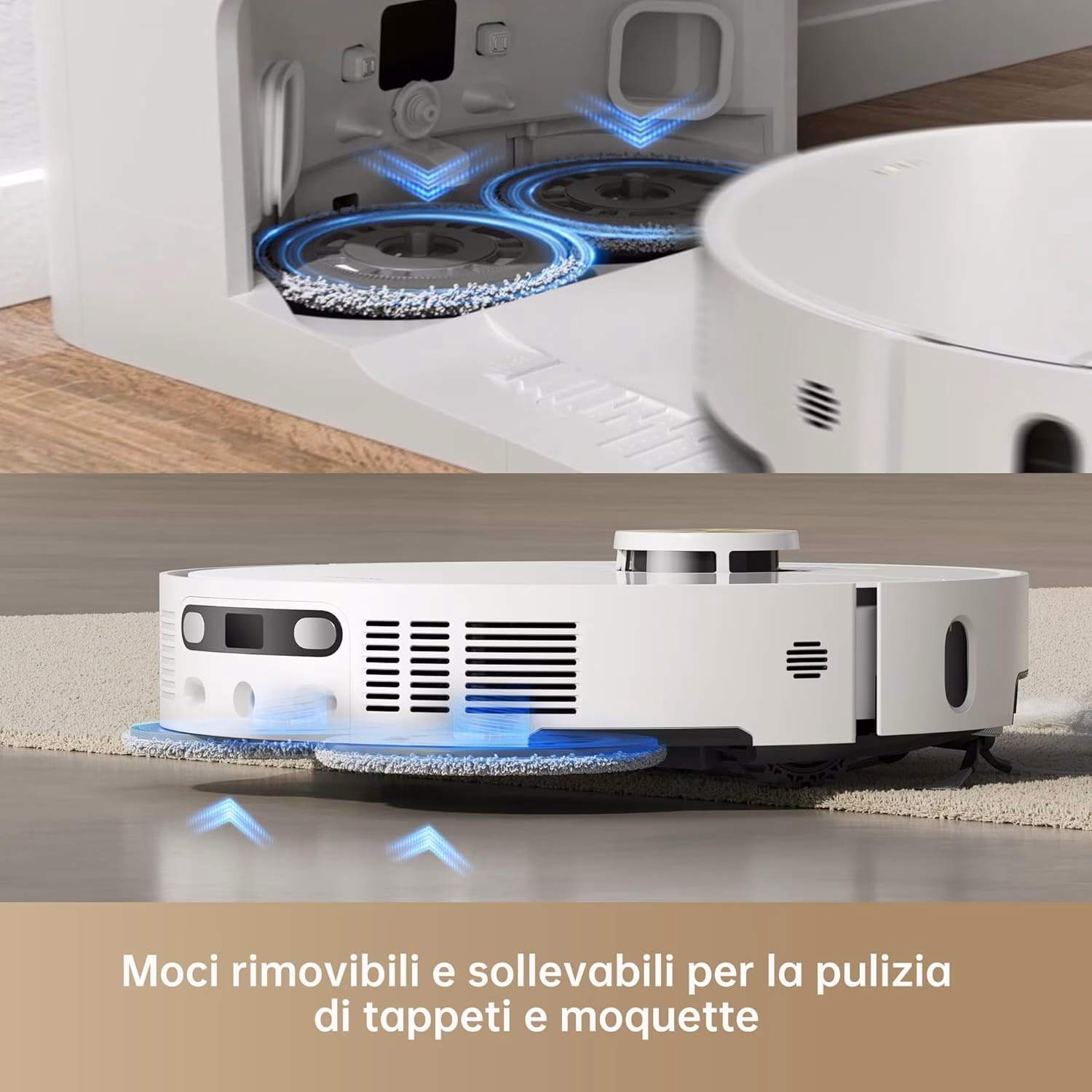→ Panni rimovibili e sollevabili da 10,5 mm — migliore protezione tappeti dell'L10s Ultra Gen 2 (solo 7 mm di sollevamento)