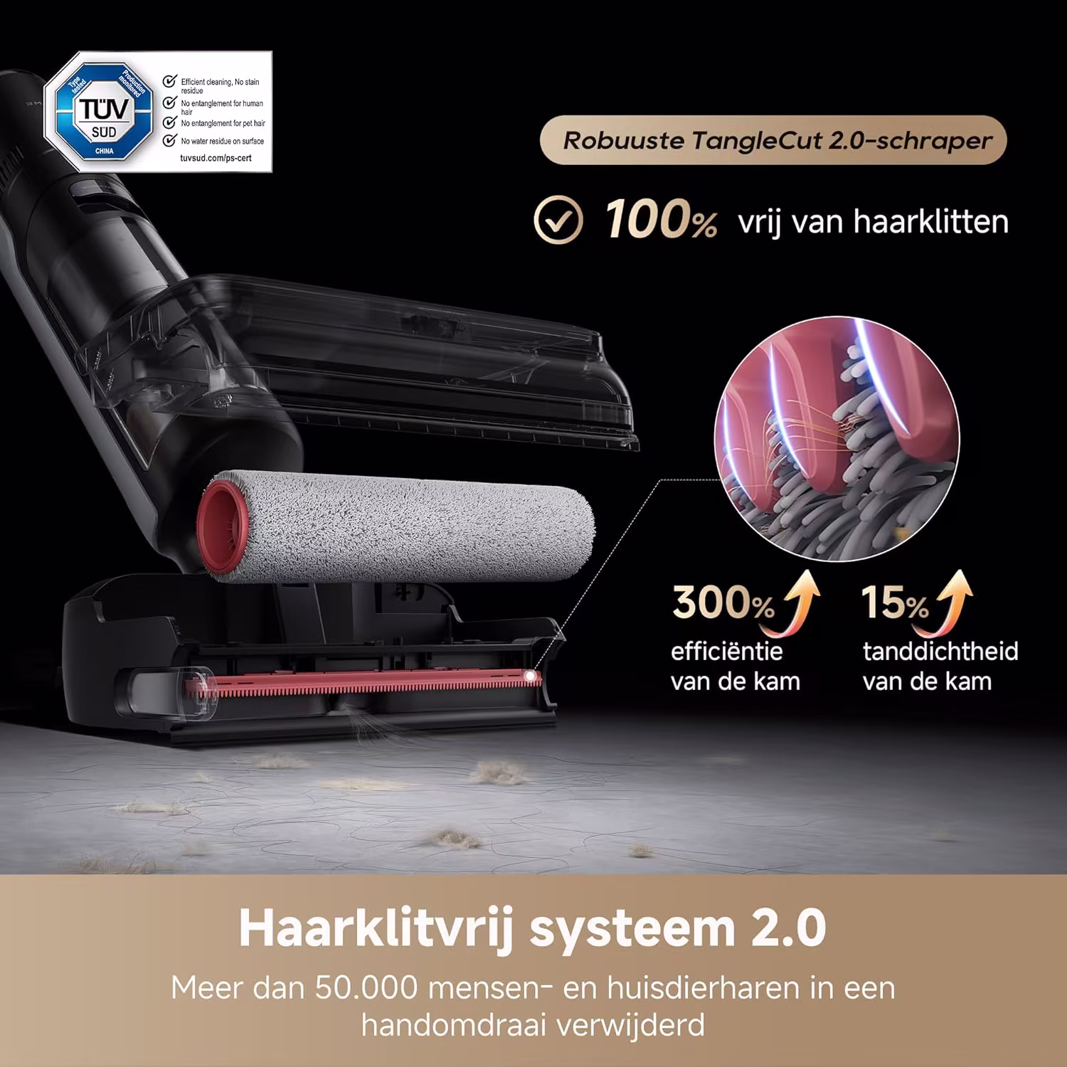 → TangleCut 2.0-systeem met 100 % klitvrijgarantie โ verwerkt meer dan 150.000 dierenharen zonder verstopping